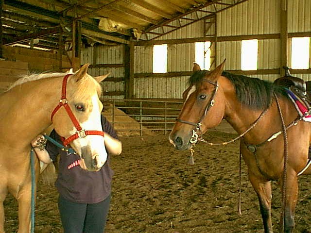 Clyde is the sweet AQHA bay on the right. He just finished ponying the little APHA palomino mare to his left and is looking a bit pitiful. Clyde serves as a wonderful lesson horse and my trusty trail mount. He was a polo pony for years and came up to Oregon from California many years ago.