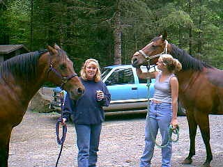 Nicker (left) is Juli's horse 1/2 arab 1/2 Morgan. Clyde in