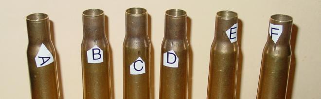 Incipient splits Those who are experienced reloaders know what this is, if I can find one and get it to show up in a picture, I'll post it. The size of the .50 makes it a little easier to inspect in this regard and an 'L'-shaped piece of wire (coathanger or similar) can be used to probe for non-uniformities inside the case.