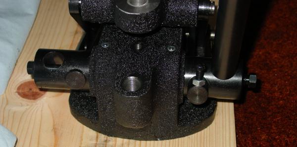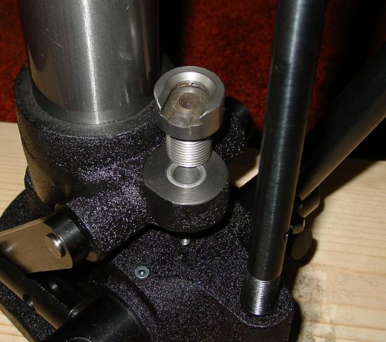 Revisiting something I noted in the 'design features' section, the shellholder mount is not the standard 7/8"-14 thread seen on most .50 presses, or the clip lock slot thingy seen on most standard presses, the Hollywood Sr. has a 1/2" bushing! This could present a small problem!