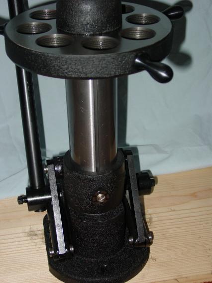 Die fit can be a bit crowded. Particularly depending on the type of die lock rings you're using. This is a chicken-egg type problem, as you could blame either the die lock-ring manufacturer or the press manufacturer. I don't blame either, but am noting the incompatibility, because it's something for the prospective owner to be aware of.